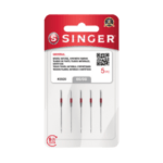 Para escolher a melhor agulha para ser utilizada no trabalho de costura, deve-se definir o tipo de tecido que será costurado, o diâmetro de agulha conforme espessura do material e a espessura da linha a ser utilizada. A maioria das agulhas domésticas está disponível no Sistema Métrico “70 a 130” ou Sistema Singer “09 a 21” de 0,70 mm de diâmetro a 1,30 mm. Assegure-se que você esteja utilizando a agulha com a medida correta e lembre-se que a linha tem que passar livremente pelo olho da agulha para a execução de uma boa costura.