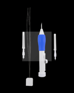 Contém: 3 Agulhas (1,3mm, 1,6mm e 2,2mm), 2 Passadores e 1 Suporte.