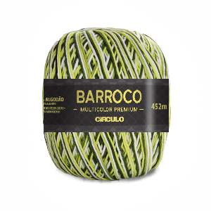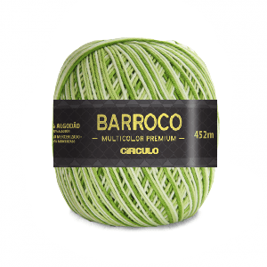 Barroco Multicolor Premium 6 Circulo 200gr é o fio diferenciado da Círculo, indicado para peças cheia de vida e com brilho incomparável. Ele é composto de 100% algodão mercerizado, resultando em um fio radiante e com toque muito mais macio. Com a evolução do artesanato, é preciso sempre se reinventar, criar produtos que agreguem valor e tornem os trabalhos cada dia mais atraentes. Ao passar pelo processo de mercerização, o Barroco Multicolor ganha brilho e intensidade, torna-se Premium.
