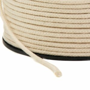 Cordões Trançado (4mm) Cru. Composição: 100% Algodão. Embalagem: Rolo 50m. Muito utilizado para confecção de peças em macramê.