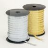 Elástico Metalizado São José (8mm) Rolo com 50m . Composição: 69% Metalizado + 31% Elastodieno, disponível nas cores. ouro e prata.