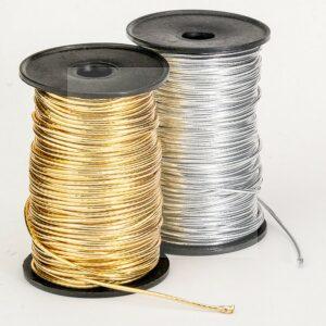 Elástico Roliço Metalizado São José (1,5 mm) Rolo com 50m . Composição: 70% Elastodieno + 30% Metalizado, disponível nas cores. ouro e prata.