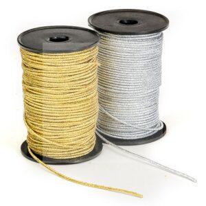 Elástico Roliço Metalizado São José (2.0 mm) Rolo com 50m . Composição: 70% Elastodieno + 30% Metalizado, disponível nas cores. ouro e prata.
