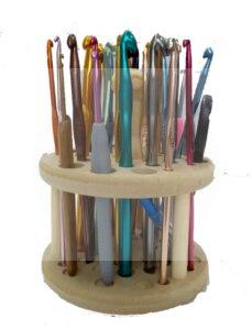 Porta Agulha de Crochê Circular 12x17cm para organizar as agulhas de crochê de vários tamanhos e medidas, facilitando o uso. Fabricado em Mdf.